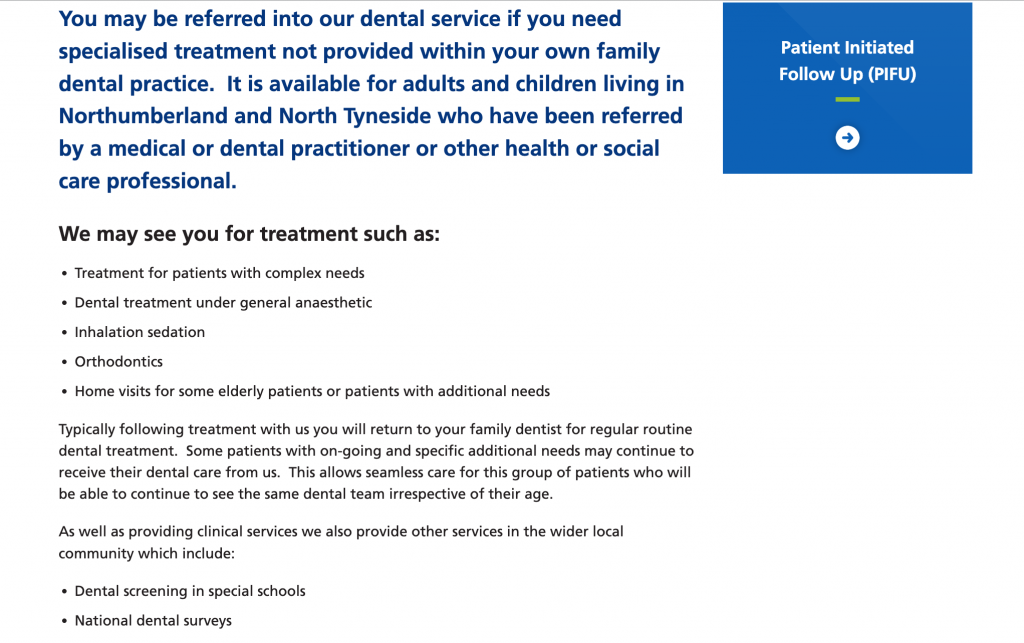 If you’re looking for a dentist who understands Special Educational Needs and Disabilities (SEND). We understand this can become a daunting process for anyone, especially individuals with Special Educational Needs and Disabilities. Therefore, it is important to find a dental practice that can offer additional support and also provides a welcoming environment. Fortunately, the Northumbria NHS Dental Care offers tailored services that enables you access to dental services with special provisions for SEND patients. Please find further information below.